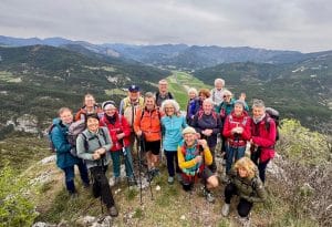 La rando débute par une piste puis se poursuit par un sentier agréable et régulier en lacets jusqu’à un belvédère vertigineux puis le sommet où nous déjeunons. Nous profitons d’une vue à 360° et