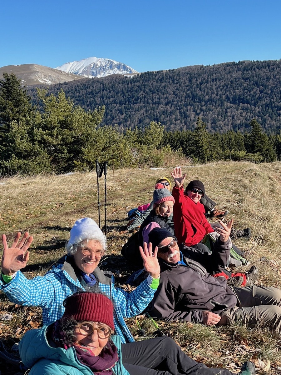 Les crêtes de la Chau méritent bien leur nom et nous accueillent en plein soleil pour le pique-nique. Le grand Veymont est juste en face, tout blanc…