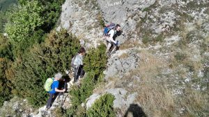 La descente sur le versant Est a permis d’observer le «Fusain à grandes feuilles» à défaut de champignons, avant de passer le tunnel et l’étroite vire, suivie d’une descente avec de beaux points de vue (qui restent à aménager) vers le pont des Gallands.