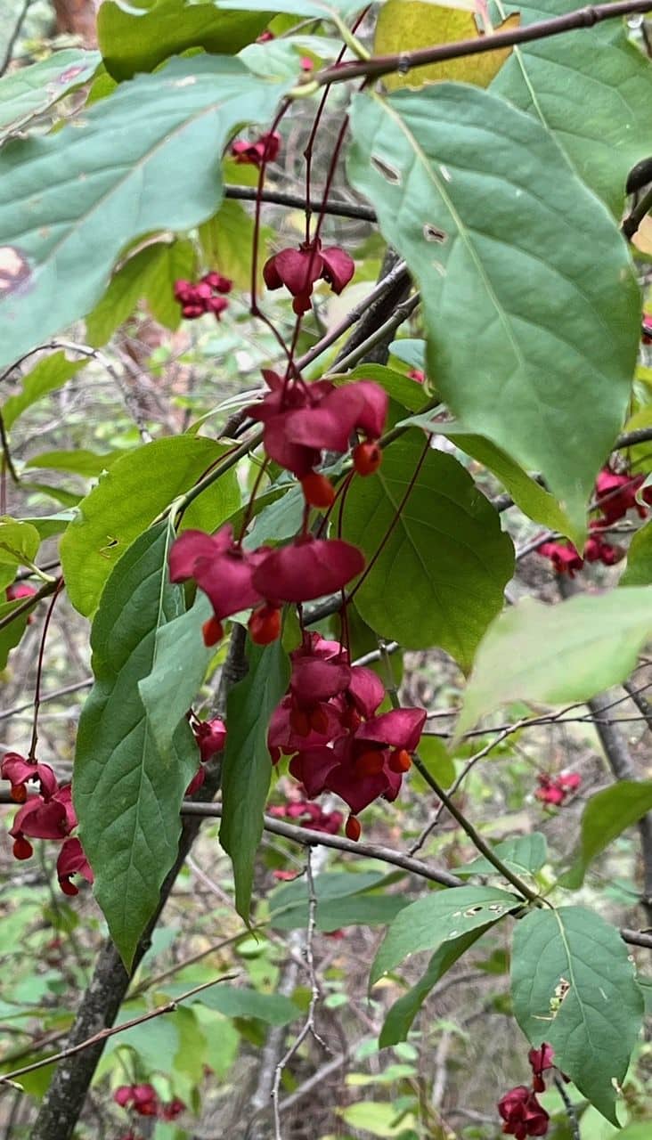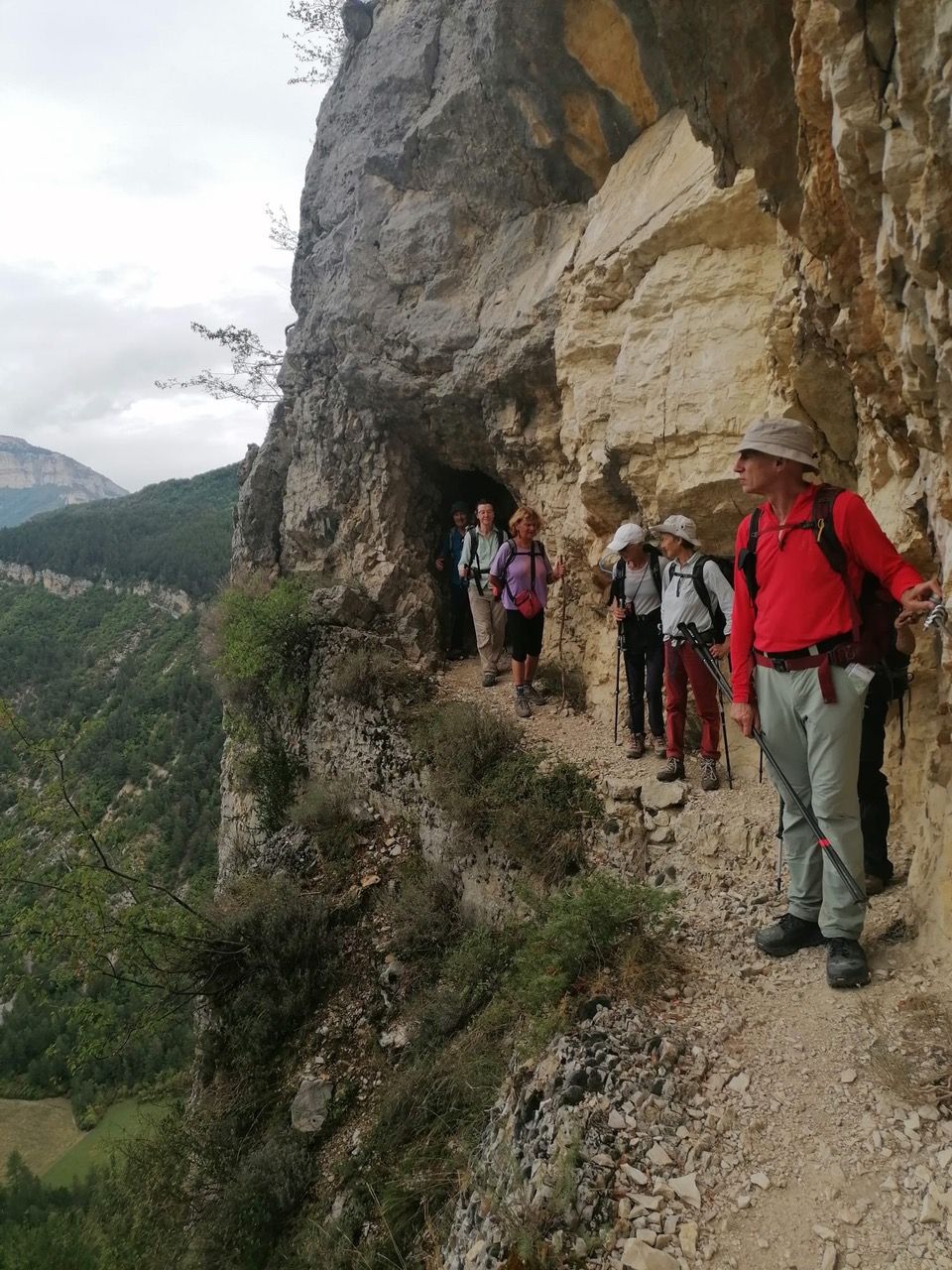 La descente sur le versant Est a permis d’observer le «Fusain à grandes feuilles» à défaut de champignons, avant de passer le tunnel et l’étroite vire, suivie d’une descente avec de beaux points de vue (qui restent à aménager) vers le pont des Gallands.