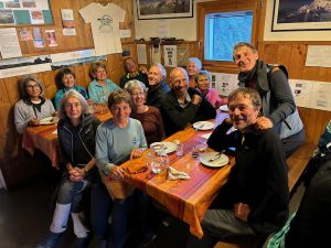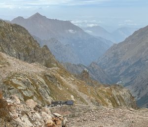 Nous arrivons au refuge de Pagari, refuge niché sur un promontoire à 2650m. Le picnic est pris à l’intérieur pour les plus frileux ou dehors pour les autres. Un café italien, ristretto ou lungo, agrémente la pause repas. Puis les Ours-es se dispersent, sieste, contemplation du paysage minéral, discussion…