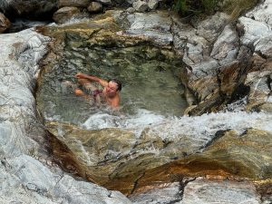 Encore 2 h de descente avec une petite pause baignade dans une superbe vasque et nous voilà à San Giacomo où nous pouvons nous débarrasser de nos déchets des 6 jours passés et apprécier l’accueil du gérant du camping qui propose pour notre picnic tables et chaises, boissons et café (et même pousse-café pour certains). Mais c’est décidé Grande Ourse ne poursuivra pas la randonnée et sera accompagnée par 2 compères pour rejoindre les voitures à Sant’Anna de Valdieri. Monique