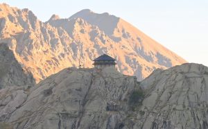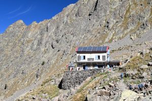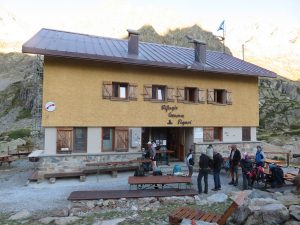 Le reste de l’ascension n’est pas mémorable et un peu monotone, nous croisons même quelques véhicules redescendant du refuge, mais elle est propice aux discussions qui vont bon train, puis égayée par la présence d’un jeune bruant jaune peu farouche qui nous distrait un moment… À l’arrivée nous apprenons que nous devrons cohabiter avec une classe de jeunes collégiens italiens qui s’avéreront très, très bruyants…