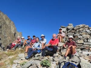Pas de discussion sur l’itinéraire aujourd’hui on prend la directissime du Colle di Fenestrelle ; un cortège d’admirateurs sur les bas-côtés du sentier nous encourage : bouquetins, chamois et perdrix bartavelles dans les pierriers … Les 600 m de dénivelés sont avalés sans soucis, l’entrainement des jours précédents commence à porter ses fruits. Au col nous faisons connaissance avec un groupe d’Italo Batave avec qui nous échangeons des photos de groupe.