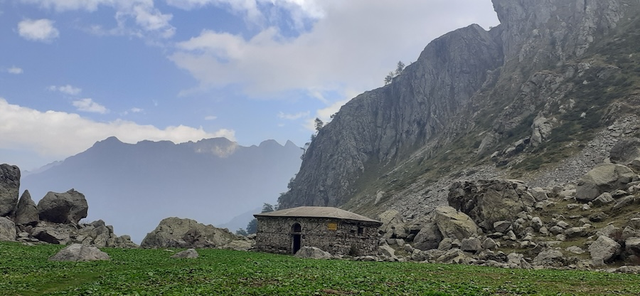 20 minutes de descente et nous atteignons le rifugio Morelli et ses pittoresques décorations ou sculptures réalisées par le très sympathique gardien qui a même fabriqué son bel accordéon.