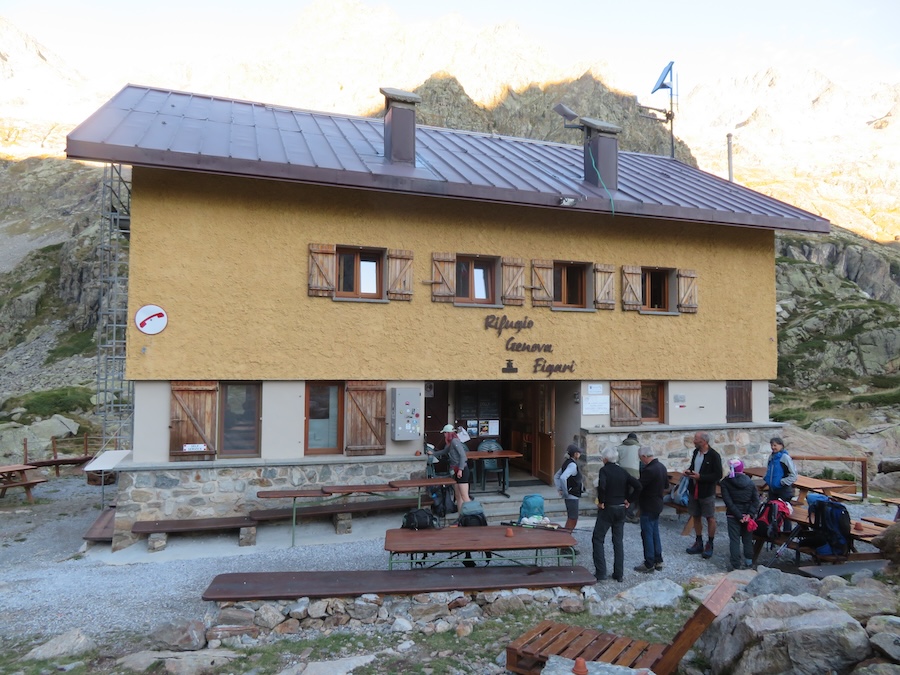 Nous attaquons la descente avec en point de mire le refuge di Genova dominant le lago del Chiotas dont la vidange expose ses profondeurs émergées, un paysage très lunaire de vase et gros blocs de rochers.