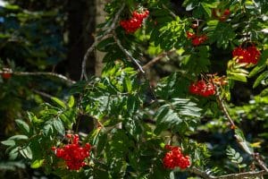 Nous continuons en sous-bois, passons à l’Ancienne Baraque Forestière de Béguère, découvrons dans de belles trouées jonchées de colchiques mauves, les fontaines de la Baume puis de l’Adret. Les sorbiers des oiseleurs lourds de leurs grappes orangées nous saluent au passage.