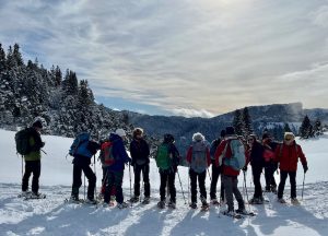 Du côté du col de Rousset, le temps semble clair en hauteur ce matin, et il y a de la neige. Treize Ours•es partent donc pour un tour du plateau de Beure raquettes aux pieds. En voiture, dans la montée, aucun regret : «