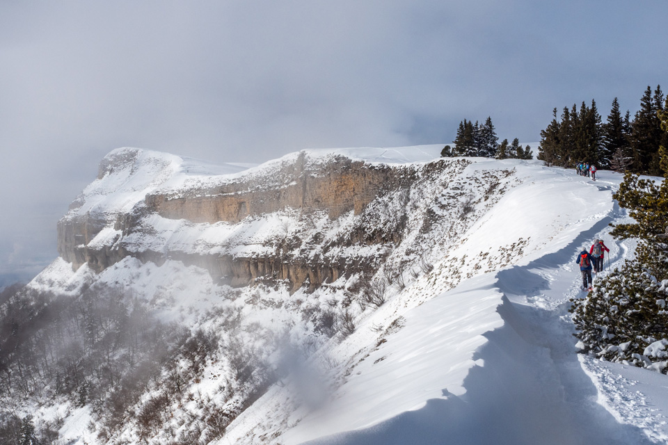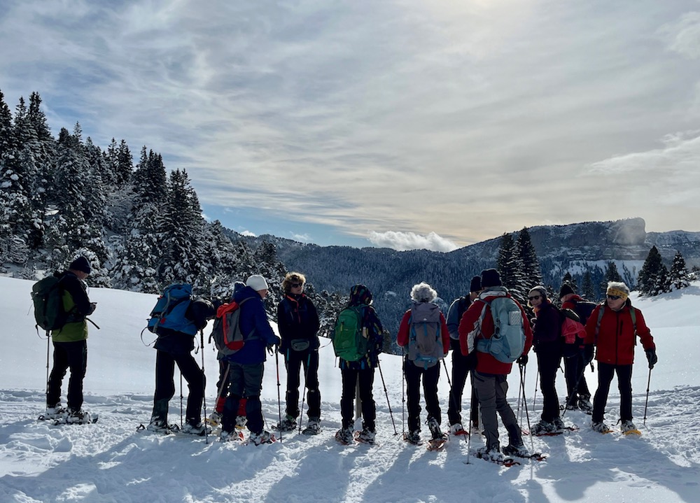 Du côté du col de Rousset, le temps semble clair en hauteur ce matin, et il y a de la neige. Treize Ours•es partent donc pour un tour du plateau de Beure raquettes aux pieds. En voiture, dans la montée, aucun regret : «