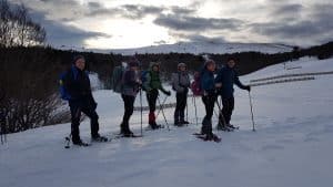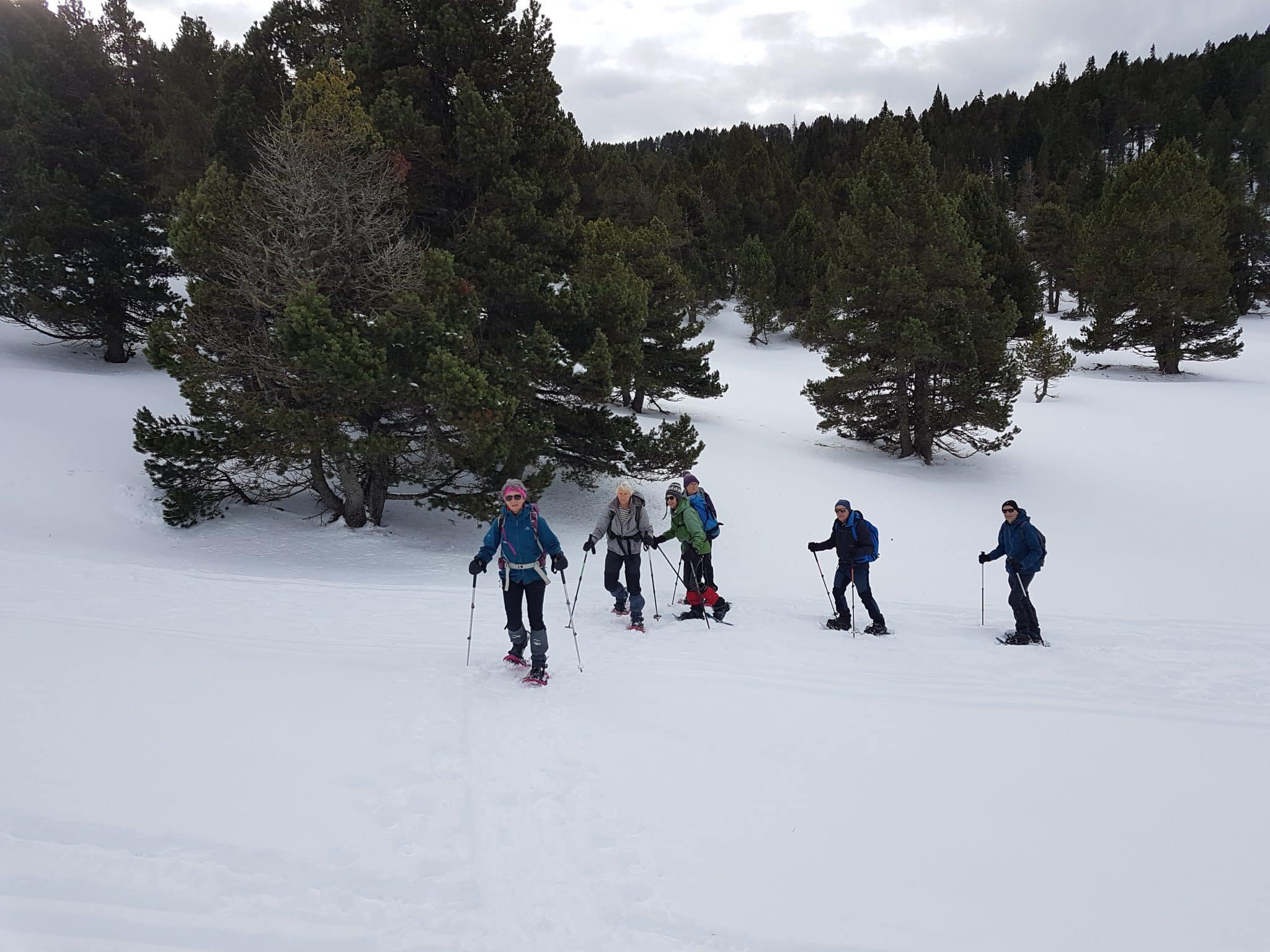 Bravant des prévisions météo assez mauvaises, sept Ours(e)s, enchanté(e)s à l’idée de chausser les raquettes, montent le col de Rousset pour déambuler dans la neige tombée en abondance.