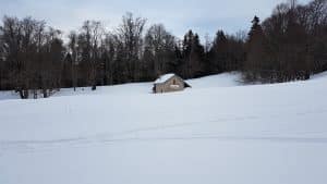 Nous passons à proximité de la glacière de Pré Peyret puis vers la cabane du même nom. Casse-croûte à l’abri. Nous y rejoignent quatre Ourse(s), partis en ski de randonnée.