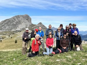 Le repérage n’est pas si simple dans ce territoire sauvage entre les cairns, les traces et les lapiaz. Après une longue traversée, parsemée d’edelweiss, de carlines et de pholiotes, nous rejoignons, via le pas de l’Ours, l’esplanade de la cabane de Chaumailloux qui nous permet d’observer le chemin parcouru. Moment de recueillement au monument de la Résistance. Puis longue descente grandiose par le pas de l’Aiguille entre les ravines jusqu’aux Fourchaux …. Nous sommes fatigués mais comblés par ce superbe et long parcours. Merci à notre accompagnateur, cela valait le détour !