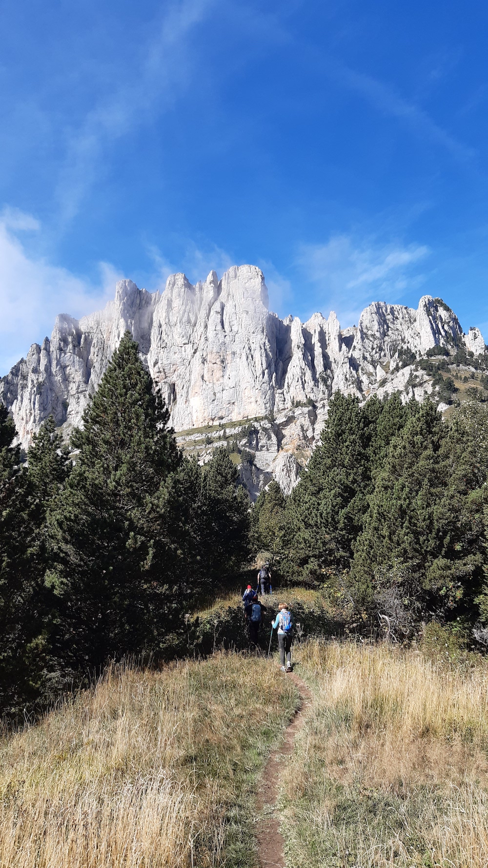 Quatorze ours motivés par cette belle journée ! Le dénivelé pour les randos loisirs sera plus important que de coutume car l’objectif est d’atteindre les rochers du Parquet en partant de la Richardière (1 057 m à côté de Chichilianne). Montée soutenue et fraîche à l’ombre, la terre est grasse, parfois glissante, les racines s’amusent à nous créer quelques surprises. Courtes pauses et nous voici rendus 600 m plus haut au col de l’Aupet.