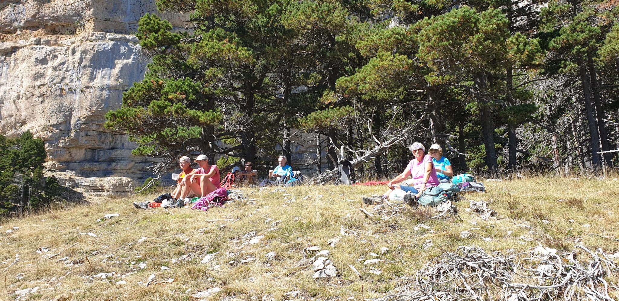Nous arrivons à midi sur « le » promontoire herbeux idéal, quelques pins pour se mettre à l’ombre, c’est l’heure du pique-nique avec son lot de bonnes petites intentions. Mais où sont les chamois ?