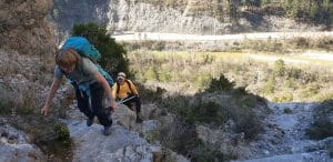 Quelques oeufs en chocolat de circonstance circulent avant de descendre de cette crête, sentier bien pentu mais sous couverture végétale et long, très long retour au pied du Rocher de l’Auban avec quelques surprenantes remontées inattendues qui nous épuisent,