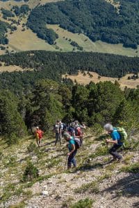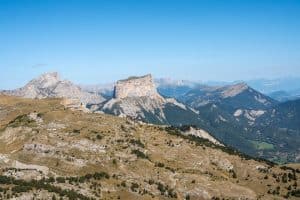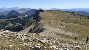 Neuf Ours•es partent du vallon de Combau jusqu’aux crêtes de Praorzel. C’est très pentu, cependant le terrain herbeux facilite la montée. Dès le départ, on en prend plein les yeux avec une douce lumière jusqu’au panorama à 360° sur les crêtes. Eh oui, la montagne est si belle ! Le Vercors, le mont Aiguille, le Dévoluy… le tout sous un ciel limpide… Et puis ça va continuer