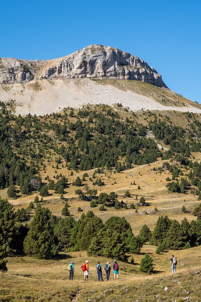 Neuf Ours•es partent du vallon de Combau jusqu’aux crêtes de Praorzel. C’est très pentu, cependant le terrain herbeux facilite la montée. Dès le départ, on en prend plein les yeux avec une douce lumière jusqu’au panorama à 360° sur les crêtes. Eh oui, la montagne est si belle ! Le Vercors, le mont Aiguille, le Dévoluy… le tout sous un ciel limpide… Et puis ça va continuer