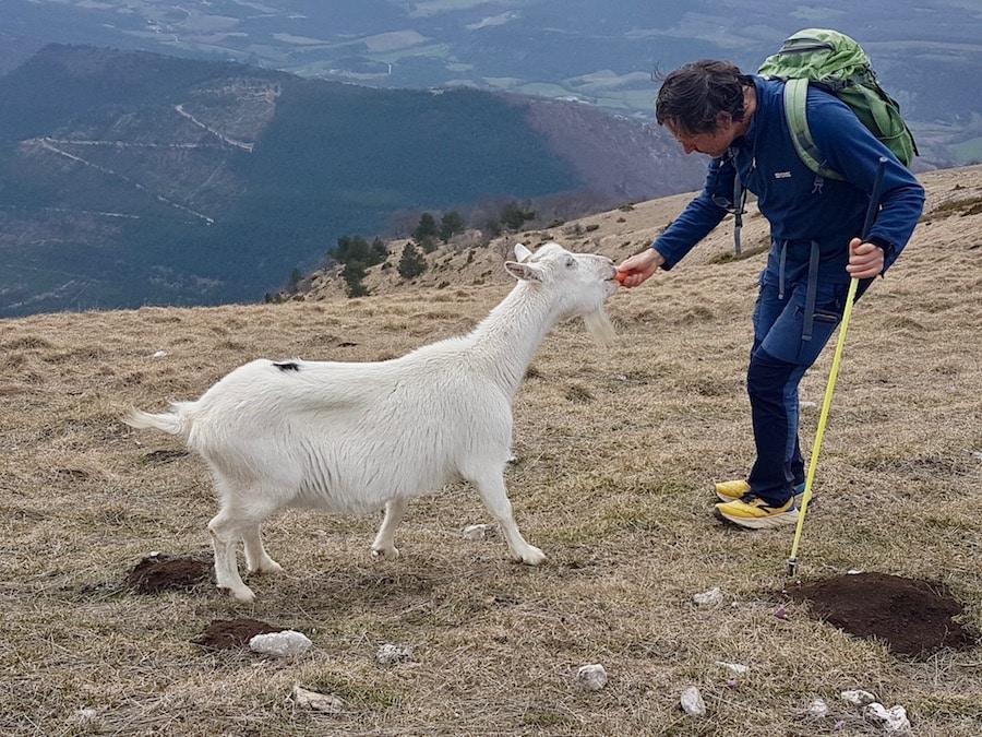 Une petite bourrasque a sonné le départ. Ondulant, éparpillé.e.s, les Ours-es ont retrouvé le Grand Delmas, croisé une chèvre blanche et amicale, avant d’entamer la descente roulante sur un petit sentier pierreux jusqu’au Col de Gourdon. Toute la journée, sur les 650 m de dénivelé répartis sur près de 8 kilomètres, ils ont pratiqué, comme d’habitude, une sociabilité particulière, alternant parole et silence, la marche produisant une conversation latérale et fragmentaire, ouverte au monde.